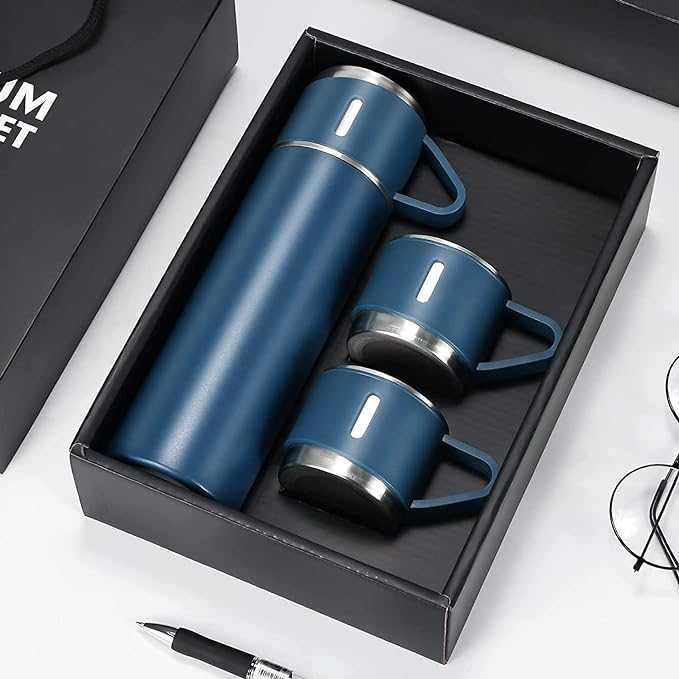 French Gift Shop Vacuum Flask Set – A stylish thermal drinkware set with a 500ml vacuum-insulated bottle and 2 mugs, perfect for gifting or personal use.